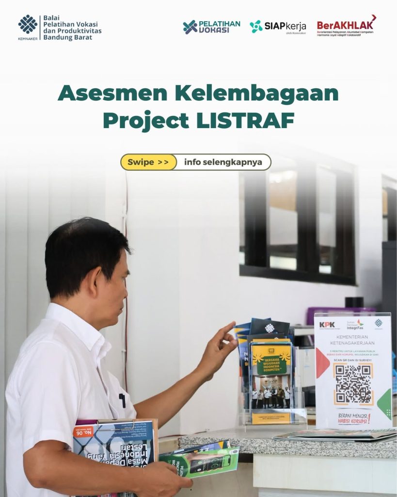 Bandung Barat, 2 Desember 2025 — BPVP Bandung Barat menjadi lokasi awal asesmen Project LISTRAF pada 1–2 Desember 2025. Kegiatan ini bagian dari agenda nasional Kemnaker untuk memperkuat transformasi balai pelatihan. Tim ahli dan tim teknis hadir untuk menilai kesiapan kelembagaan dan layanan vokasi.