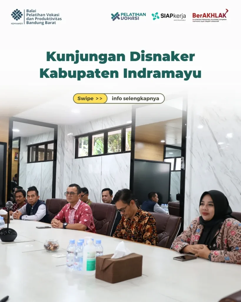 BPVP Bandung Barat menerima kunjungan dari Dinas Ketenagakerjaan Kabupaten Indramayu bersama Ibu Kepala Dinas, Kamis (15/1). Kunjungan ini menjadi momentum penting dalam memperkuat sinergi pengembangan pelatihan vokasi. Kolaborasi ini diarahkan agar lebih adaptif terhadap kebutuhan dunia kerja dan industri. Dengan adanya kunjungan ini, komunikasi antar lembaga semakin terbuka dan produktif. Selain itu, kegiatan ini memperlihatkan komitmen bersama dalam membangun tenaga kerja berkualitas.