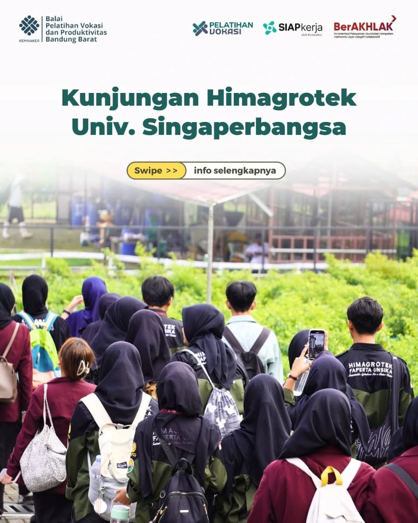 Pada Selasa, 24 Juni 2025, BPVP Bandung Barat menerima kunjungan dari Himpunan Mahasiswa Agroteknologi (HIMAGROTEK) Universitas Singaperbangsa Karawang dalam rangka kegiatan fieldtrip SCRECNATURE 2025. Sebanyak ยฑ50 mahasiswa antusias mengikuti agenda ini sebagai bagian dari eksplorasi ke dunia pelatihan vokasi pertanian.