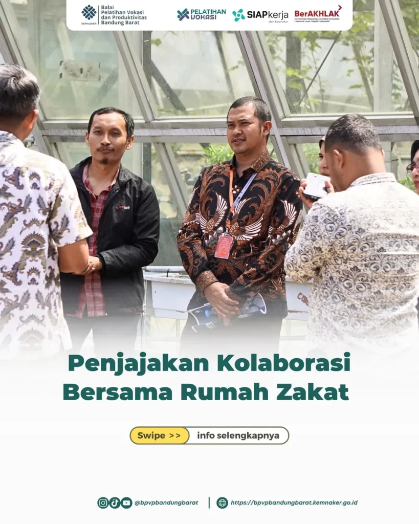 Bandung Barat, 21 Agustus 2025 — Balai Pelatihan Vokasi dan Produktivitas (BPVP) Bandung Barat menerima kunjungan audiensi dari Rumah Zakat. Rumah Zakat merupakan lembaga filantropi yang mengelola zakat, infak, sedekah, dan dana kemanusiaan. Mereka juga menjalankan program CSR melalui berbagai kegiatan pemberdayaan masyarakat. Kunjungan ini disambut hangat oleh jajaran manajemen BPVP Bandung Barat.